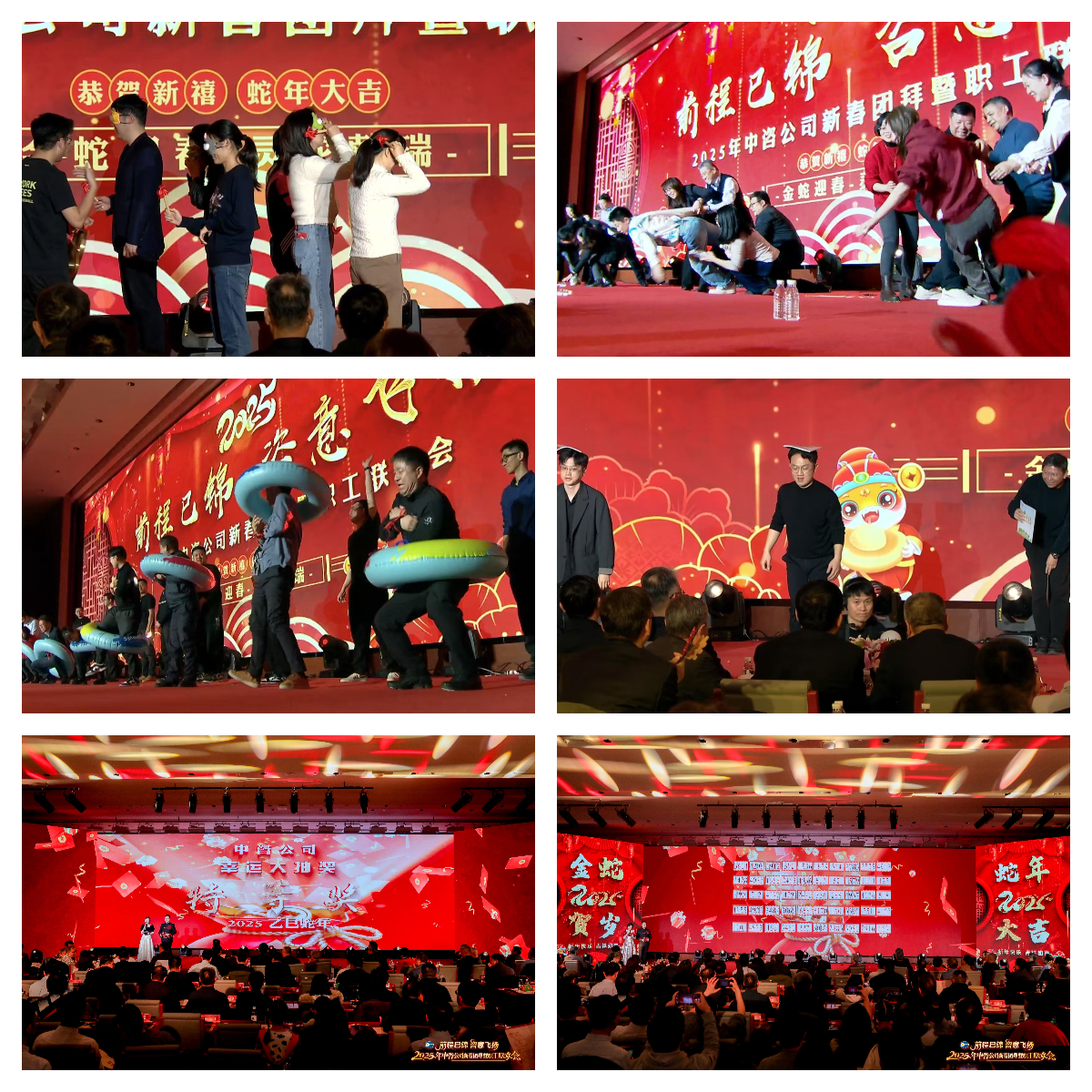 1月23日,中咨公司以“前程巳锦 咨意飞扬”为主题举办新春团拜暨职工联欢会,旨在凝心聚力共谋公司高质量发展新篇章。公司党委书记、董事长苟护生出席团拜会并致辞。公司领导、外部董事、离退休老领导及专家学术委员会专家代表与公司员工齐聚一堂,共迎新春。 团拜会以员工自编自演的文艺作品演绎中咨故事、回顾发展成绩、展望美好未来。 开场舞《鼓乐齐鸣》表达中咨人奔向新征程的火热赤诚;说唱《点赞中咨》、舞蹈《中咨神话》充满中咨人胸怀“国之大者”、助建“国之重器”的骄傲与自豪;喊麦串烧《我爱中咨》涌动中咨青年的奋斗激情;合唱《我们年轻,所以会更好》传达中咨正年轻的青春澎湃;魔术《中咨礼物》变出满满惊喜,中咨乐队《我的未来不是梦》传递满满信心;手势《拍拍舞》是中咨人步调一致、团结奋进的写照;歌曲《中咨人始终前行》、快板《共筑中咨新辉煌》、街舞《一起向未来》激励中咨人携手向前。 员工们还巧妙地把咨询工作场景融入艺术创作,表达爱党之情、报国之志、兴企之责。歌舞《上春山》是公司献计献力美丽中国的艺术表达;原创歌曲《铁军》唱出中咨人助力国防和军队现代化建设的壮志凌云;互动舞蹈《舞动光影》讲述中咨新生代将科技创新与工匠精神紧密结合的理念与期盼;情景剧《好事成双》从公司卓越工程师学院与高校联合培养博士生的视角,展现中咨人舍小家为大家的奉献精神。 一枝一叶总关情。解说式表演《中咨运动会》展现中咨人的活力、凝聚力、向心力,情景歌舞《美好生活音乐串烧》、舞蹈串烧《感到幸福你就拍拍手》洋溢美好生活的幸福感、获得感,特别是坚守工作一线的中咨公司海外员工送来祝福短片《天南海北中咨人》,让全体中咨人深受激励。还有民乐合奏《青花瓷》、非遗节目《戏偶献瑞》是中咨人对中华优秀传统文化的再演绎、再致敬。中咨合唱团压轴节目《亲爱的中国,我为你歌唱》以及集体大合唱《歌唱祖国》,传递新老中咨人对伟大祖国的无限深情。 团拜会现场处处洋溢着欢乐祥和。干部职工即兴上台互动,“蒙眼敲锣”“群龙取水”“夹纸运书”“要出圈”四个游戏环节将现场欢乐氛围拉满,台上台下欢声笑语不断。抽奖环节扣人心弦,为场内场外中咨人送去惊喜连连。 风劲帆满图新志,砥砺奋进正当时。公司领导代表公司党委、董事会和经营班子成员,向长期以来关心支持公司发展的各级领导和专家,向辛勤耕耘的中咨职工和家属,以及所有离退休老同志们致以诚挚谢意和新春祝福,号召大家在公司“五五战略”引领下,朝着建设国家高端智库和世界一流咨询机构的目标勠力同行。 团拜会开启线上直播,公司各办公区、所属企业、基层项目部设置视频分会场,直播观看超过两万人次。 团拜会开始前,苟护生陪同公司老领导参观公司咨询成就展。苟护生向老领导们介绍公司改革发展情况,感谢他们长久以来对公司发展的关心支持与亲切指导,希望他们今后继续为公司高质量发展建言献策。老领导们饶有兴致地观看展馆陈设,追忆公司发展历程,对公司近年来的发展成果给予充分肯定,并为干部职工昂扬奋进的精气神点赞。 岁月常新展宏图 继往开来谱新篇 乙巳蛇年 中咨公司全体干部职工 将集智汇力 乘势而上 共创中咨新辉煌 | |||||