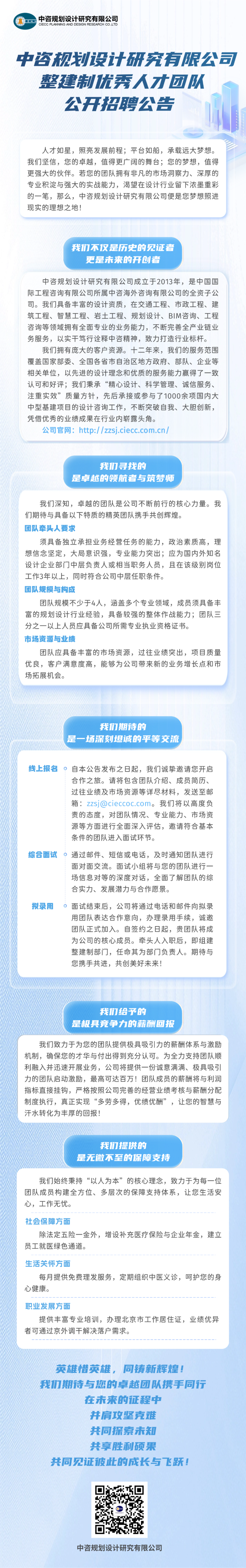 中咨规划设计研究有限公司整建制优秀人才团队公开招聘公告