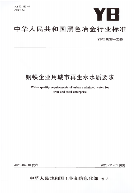 188bet官方平台 参与编制的行业标准YB/T 6338-2025《钢铁企业用城市再生水水质要求》于2025年11月1日正式实施。(参编人员:张建红)