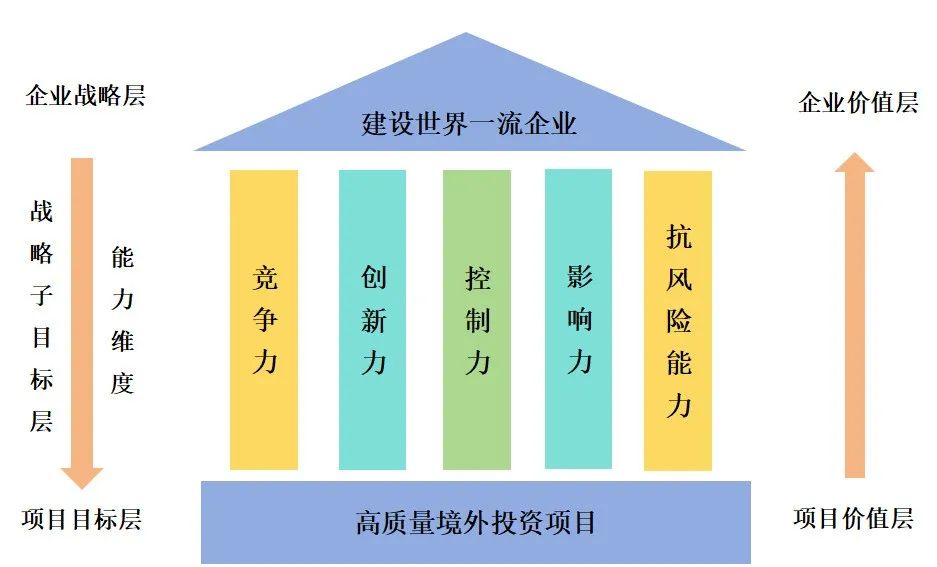 编者按:随着“双循环”战略、“走出去”战略和“一带一路”倡议的深入推进实施,对企业境外投资开展系统研究,探索如何更高质量地开展境外投资,成为当前一项重要和紧迫的任务。我国拥有坚韧完整的产业链、高效稳定的社会治理和广阔开放的消费市场,有望担当全球经济治理的改革者、国际供应链的枢纽站、跨国资本技术要素的集纳方,以强大的兼容力、吸引力、整合力,为开拓新时代更高水平、更宽领域的国际共赢格局贡献中国力量。本公众号将企业境外投资研究成果以系列文章的形式陆续刊发,第一至第五部分是关于全球与我国境外投资的情况分析,第六至第八部分从战略引领、价值创造的视角,以中央企业为主体,着重探讨通过构建“战略和价值”二维一体的境外投资模式,对境外投资决策进行分析和研判,对境外投资项目进行分类组合与资源配置,培育和壮大中央企业在特定的某个方面或多个方面可能存在的突出竞争优势。第九部分和第十部分将分别阐述战略和价值评价的基本方法和“战略和价值”二维一体境外投资高质量发展模式的指标体系构建。本文是研究报告的第九部分,供业界同仁参考。 企业境外投资系列研究之九: 战略和价值评价基本方法 杨凯越 本文针对中央企业的境外投资,构建了从企业战略到项目目标、从项目价值到企业价值的投资模式和路径,对企业层和项目层两个层面进行研究。从而帮助中央企业更好地理解其特点和优势,指导其境外投资决策和实施。其中,从企业到项目的研究意味着要从宏观层面到微观层面进行分析。在企业战略层面,中央企业的境外投资战略应该与国家战略和企业发展战略相一致,考虑国家利益和安全、企业长期发展战略等因素。在项目层面,中央企业需要考虑投资目标的选择、投资模式的设计、风险管理、项目执行等方面的问题。从项目价值到企业价值的研究都要关注中央企业在境外投资过程中的价值创造。这同时涉及企业整体的战略目标与境外投资项目之间的契合度,境外投资项目的选择、决策,境外投资项目群的构建等问题。 图1 建设世界一流企业与高质量境外投资项目的战略-价值关系图 一、企业战略层的评价 (一)企业战略层的分解思路 1.企业战略层分解的难点 (1)顶层战略目标可能流于形式 大部分中央企业都十分重视战略的制定,一些中央企业委托咨询单位协助其制定公司的战略规划,但在部分企业中,仍然存在制定好的顶层战略,未能得到良好地贯彻和实施,战略目标停留在形式层面的情况。从高层、中层管理者到基层员工,对于制定战略的背景以及政策了解程度不同,呈现出逐级减弱的态势,因而公司管理层和基层员工对于战略目标的理解以及对于战略目标的执行有着较大差异,同层级中随着部门的差异化而差异化,随着层级降低而降低,不能有效形成资源合力。 (2)战略的模糊性特征可能较难项目化分解 一方面,战略本身具有模糊特性,将模糊性的战略定性定量化分解、模糊的战略项目式分解,对科学性和系统性有较高的要求。另一方面,大部分中央企业机构庞大,管理层级较多,境外投资项目往往仅属于中央企业的某个独立板块,将企业战略目标和项目战略目标相匹配,通过项目指标进行战略管理,可能存在项目战略目标不能被各层级员工全面理解和执行的情况。 2.战略分解的要点 (1)完成企业战略目标向境外投资项目战略目标的细分 战略的执行需要将模糊、长远的发展愿景、发展目标,转变为具有可操作性的阶段性目标和举措。在实践过程中,中央企业必须将已经制定的长期发展目标与短期的行动目标、独立的境外投资项目目标、各层级与涉及个体的责任相统一相结合,将总体战略细化落实到各个项目和各岗位员工的工作任务中。在战略执行过程中,要构建较为全面、科学的战略控制系统。针对战略规划,各层级单位及部门所承担的目标及具体任务需要设定清晰的指导和指标,对项目部和员工个人的细分任务落实情况对照考核,从而确保企业总体战略得到系统性的落实。 (2)完成关键指标的设置 在设计指标权重时,应考虑中央企业在不同阶段的发展重点,以及其所处行业、性质(保障类、商业类等),根据企业实际情况的变化而及时变更指标,权重分配应能够引导项目对相匹配的企业战略的完成。大致应遵循以下原则: 1)平衡分布 一般而言,每个方面指标的权重应平衡,不能过高或过低。如果某一方面指标的权重过高,则可能导致高权重指标在工作中被过度关注,而忽视其他低权重指标;如果权重过低,指标极易被忽略,评价中也就失去了它的价值。为了便于计算和比较,指标权重一般设置为5%的整数倍,最小为5%。 2)战略导向 指标的权重设计要能够体现出企业战略的发展方向,与企业战略目标相关度越高的指标则权重越高、对企业战略目标支持性高的指标权重高、综合性强的指标权重高。 3)重点突出 根据帕累托法则,即著名的“二八原则”,一般一个方面最重要的指标只有2-3个,如果有2个,那么每个重要指标的权重都应在30%以上,其余指标的总和应低于40%;如果有3个,那么每个重要指标的权重一般在20%以上,其他一般指标的总和低于40%。 4)先定量后定性 在其他条件一致的前提下,可以根据“定量为主、定性为辅,先定量、后定性”的指标评价原则,优先设定定量类指标权重。定量
